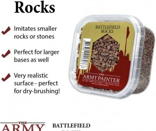 Use Battlefield Rocks for smaller stones, giving a perfect texture on especially larger bases – to break the even look. Highly realistic look!