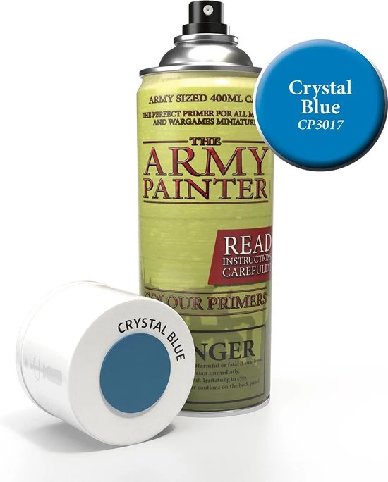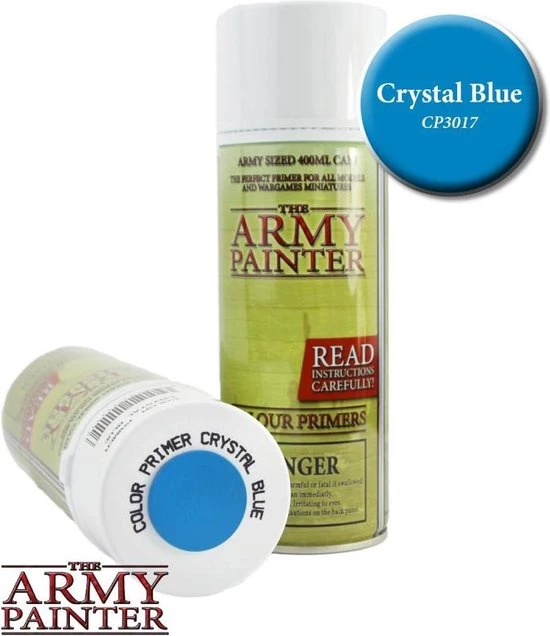 The Army Painter Crystal Blue is een lichtblauwe kleur, waardoor het een onmisbare grondverf is voor bijvoorbeeld High Elves en Lizardmen, maar probeer het ook eens op Tau, Eldar, Imperial Guards of Tzeentch Demons of Chaos Warriors. Het fijne pigment maakt deze Colour Primer Crystal Blue – lichtblauwe kleur primer de perfecte grondverf voor alle schilderprojecten. De verf droogt snel en houdt ieder detail op het model in perfecte conditie. Voeg nog wat extra details toe met kleur aan de miniatuur en dip het daarna in Quickshade. De kleur van Crystal Blue zorgt dan al voor het meeste werk! Tip: De Strongtone Quickshade werkt hier het beste bij!