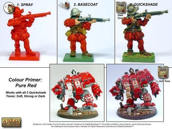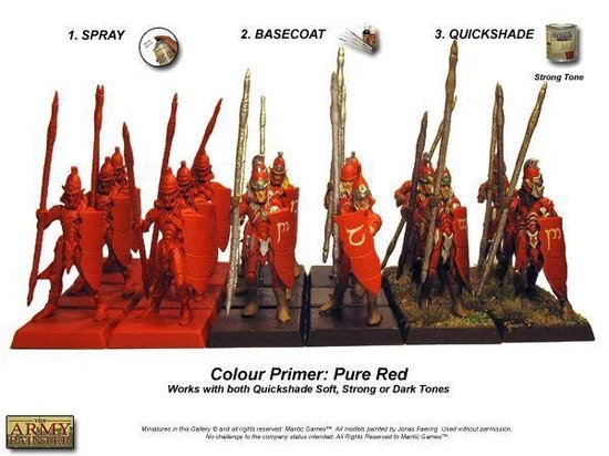 The Army Painter Pure Red is een fel rode kleur, waardoor het een onmisbare grondverf is voor bijvoorbeeld sci-fi of chaos legers. Het fijne pigment maakt deze Colour Primer Pure Red – fel rode kleur primer de perfecte grondverf voor alle schilderprojecten. De verf droogt snel en houdt ieder detail op het model in perfecte conditie. Voeg nog wat extra details toe met kleur aan de miniatuur en dip het daarna in Quickshade. De kleur van Pure Red zorgt dan al voor het meeste werk! Tip: De Strongtone Quickshade werkt hier het beste bij!