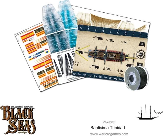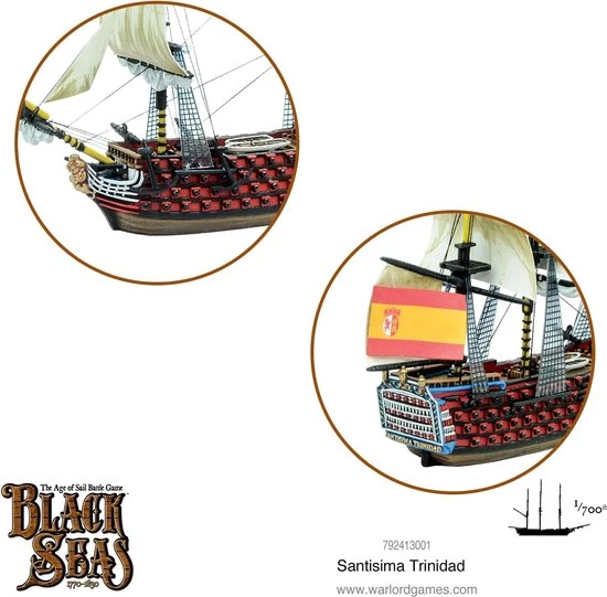 The vast bulk of the Santisima Trinidad is alluded to with its special rules in Black Seas – she is only ever able to make a single change of direction during her activation. She also requires a successful skill test to be able to travel at full sails.