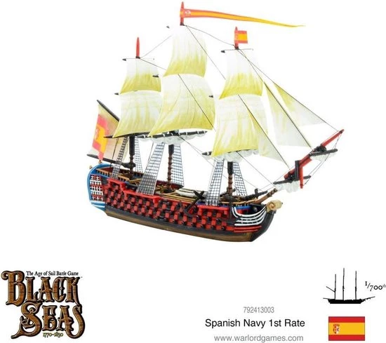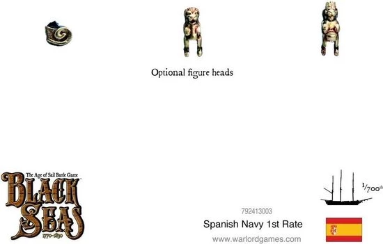 Spanish 1st Rates are especially characterful when utilising the national special rules in the game. Many Spanish vessels were extremely heavily armed, and thus can take the ?Over Gunned? upgrade for no additional cost. This bonus does not come without penalty however, as such bulky ships were difficult to sail. They must therefore pass a skill test when attempting to sail at a quicker rate of knots. Veteran crews are also not allowed to be taken on such ?Over Gunned? 1st Rates ships.
