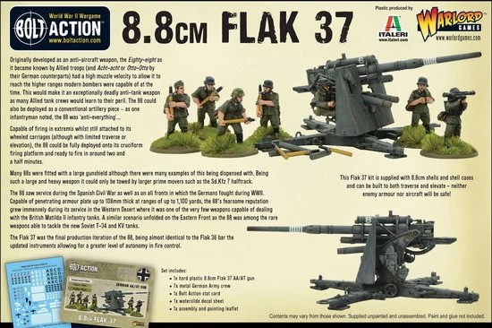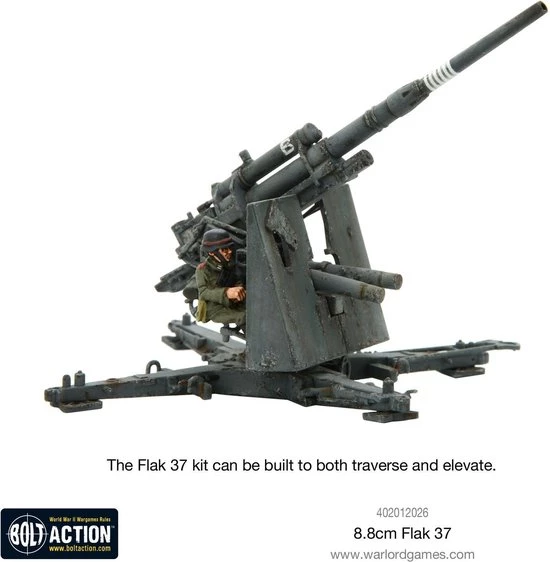 - One 1/56 scale hard plastic WWII 8.8cm Flak 37 dual-purpose AA/AT gun