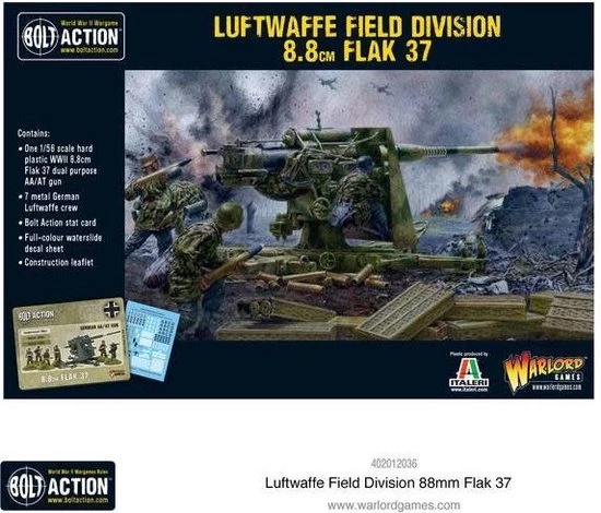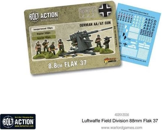 - One 1/56 scale hard plastic WWII 8.8cm Flak 37 dual-purpose AA/AT gun