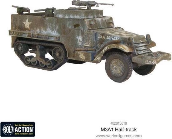 They had a crew of three men and could carry ten fully equipped troops. There were many variations on the chassis including tank destroyers, mortar carriers and ambulances, but most frequent by far were the M3A1 with its armament of a heavy .50 cal heavy machine gun and two or more .30 cal machine guns.