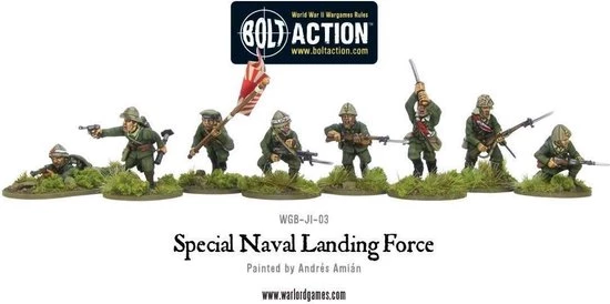 Naval troops wore uniforms of a similar cut to those of the Army, but in olive drab rather than the Army’s khaki and with black rather than brown boots. This makes a unit of SNLF stand out nicely from the Army units in your force, adding greater variety as well as no mean performance.