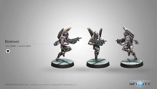 This Infinity Aleph Ekdromoi (HMG) blister pack contains one (1) Aleph Ekdromoi (HMG) miniature. All miniatures are supplied unassembled and unpainted.