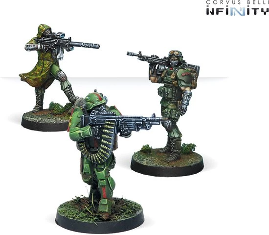This box includes 3 miniatures for Ariadna: 1 Tankhunter with HMG, 1 Scout with AP Sniper Rifle and 1 Veteran Kazak with AP HMG. With this box you can expand your options when creating an Army List and continue the Ariadna collection you started with Operation: Crimson Stone.
