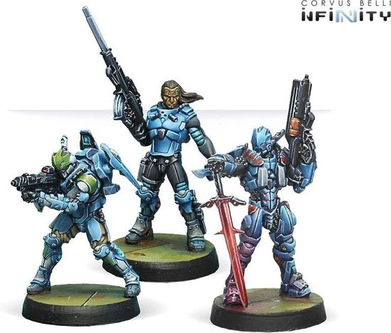 This box includes 3 miniatures for PanOceania: 1 Akalis with Combi Rifle, 1 Swiss Guard with HMG and one Croc Men with MULTI Sniper Rifle. With this box you can expand your options when creating an Army List and continue the PanOceania collection you started with Operation: Kaldstr?m
