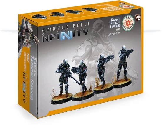 This box includes four miniatures: one Kaplan with Combi Rifle, one Kaplan with MULTI Sniper Rifle, one Kaplan with Spitfire and one Kaplan with Adhesive Launcher. With this box we can strengthen our Haqqislam Sectorial Army of Qapu Khalqi or the NA2 Foreign Company Army