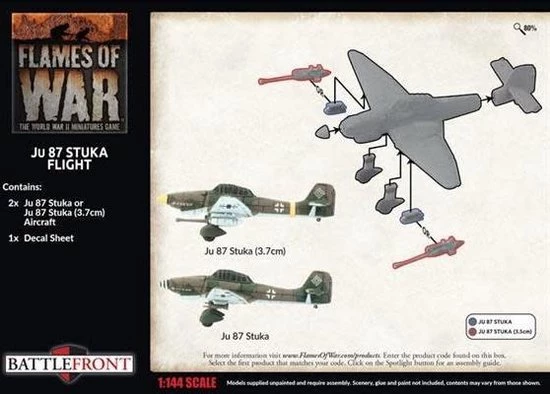 includes two Ju 87 Stuka aircraft, two plastic flight stands and one decal sheet.