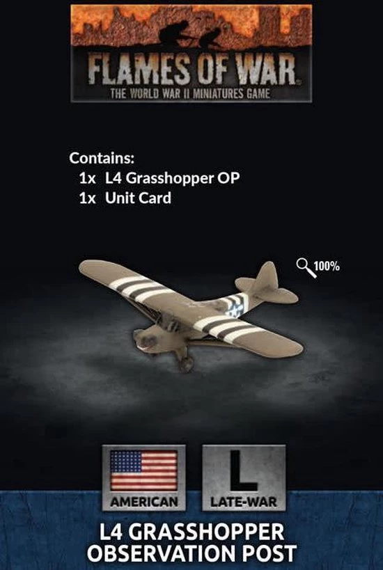 includes one resin and metal L4 Grasshopper aircraft, one Plastic Flight Stand Sprue and one Unit card.