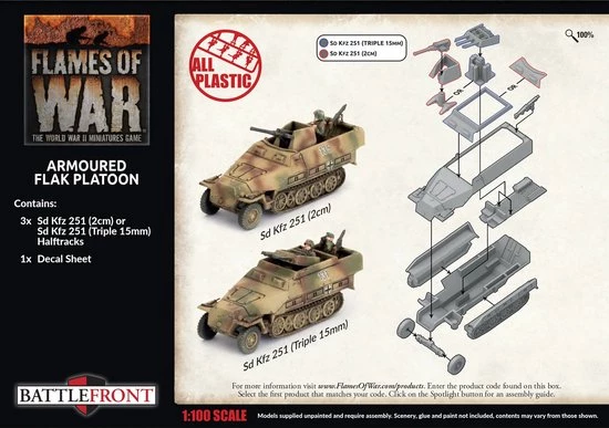Armoured Flak Platoon Contains 3x Sd Kfx 251 (2cm), or Sd Kfz 251 (Triple 15mm) Half-tracks and 1x Decal Sheet