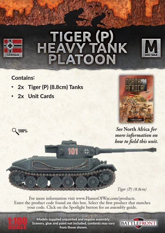 Tiger (P) Heavy Tank Platoon Contains 2x Tiger (P) (8.8cm) Tanks and 2x Unit Cards