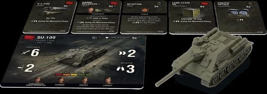 The SU-100 has one of the highest Firepower stats of any tank, but suffers from low Initiative. Support it with a good crew and it will be deadly on the battlefield. Contains a pre-painted Tank, 5 Crew, Module, and Upgrade Cards, and an Online Bonus Code.