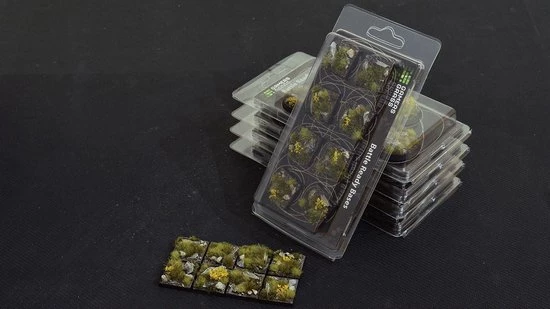 This pack contains 8 square Battle Ready Bases 25mm wide in a highland theme.