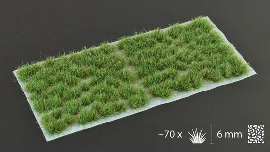 One plastic sheet of 14.5cm x 6.5cm full of Gamer’s Grass tufts. Tufts are 4-6mm tall.