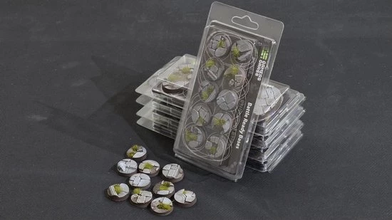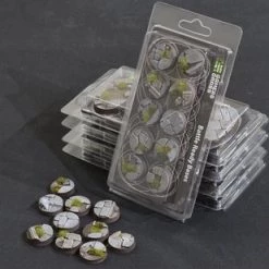 This pack contains 10 round Battle Ready Bases 25mm wide in a temple theme.