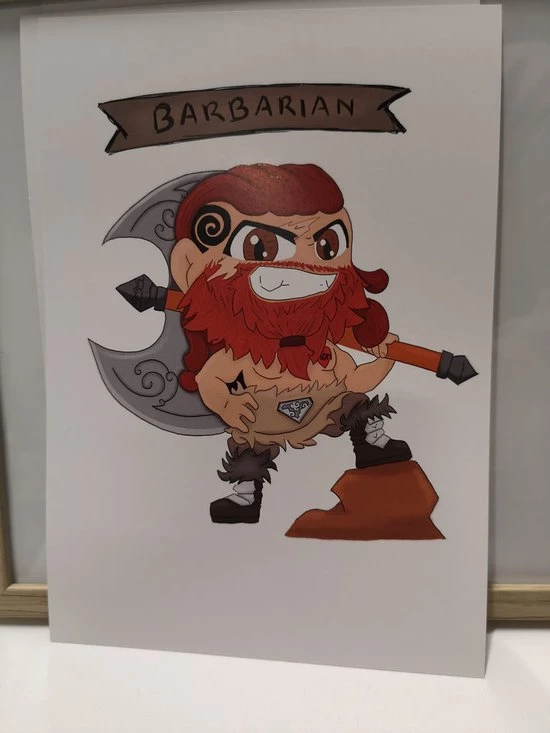 Chibi artwork Barbarian a post card for ppl who love duengens and dragons or chibi