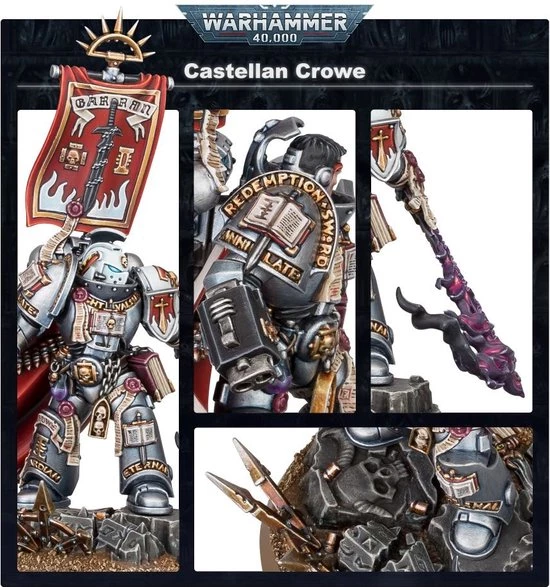 Castellan Crowe is an incorruptible warrior and a potent HQ choice for any Grey Knight force. A peerless duellist, Crowe can seek out and strike down enemy characters with the cursed Black Blade of Antwyr, his indomitable will allowing him to fight through wounds that would fell another Space Marine. A potent psyker in his own right, Crowe can also unleash gouts of psychic flame at his enemies.