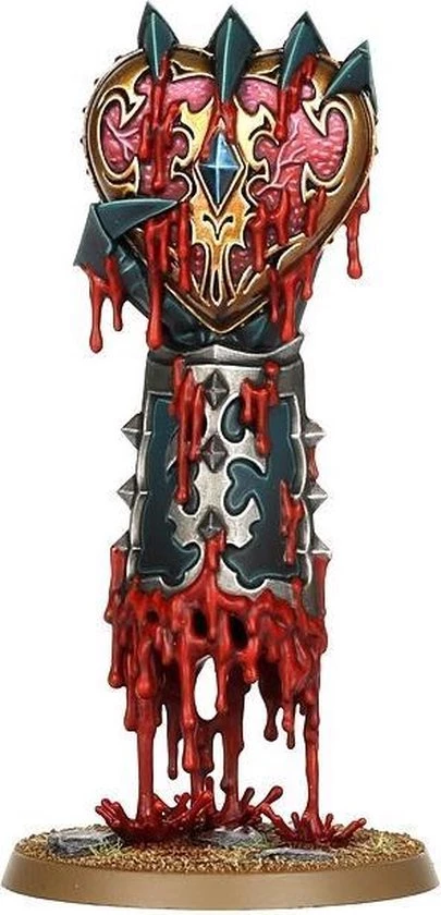The most devout of Khaine’s priestesses can summon a manifestation of his Iron Heart, a blood-dripping icon that burns with supernatural rage. Those bathed in its wrathful aura continue to fight and kill even when stricken with mortal wounds.