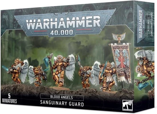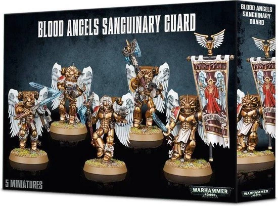 The Sanguinary Guard are the utmost elite of the Blood Angels chapter. They fight with wrist-mounted Angelus boltguns that leave both hands free to wield crackling power glaives. The Sanguinary Guard are a brotherhood of mortals-become-gods and their deeds are the stuff of legend.