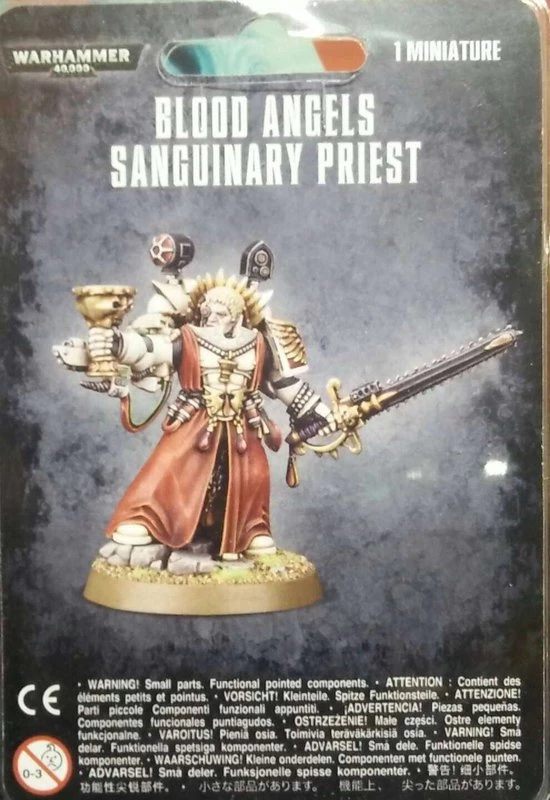 The Sanguinary Priests are the Apothecaries of the Blood Angels, charged with preserving the Chapter?s precious gene-seed. Each Priest carries a blood chalice, each believed to contain a sliver of the essence of Sanguinius himself and which galvanises nearby Blood Angels to even greater feats of heroism.