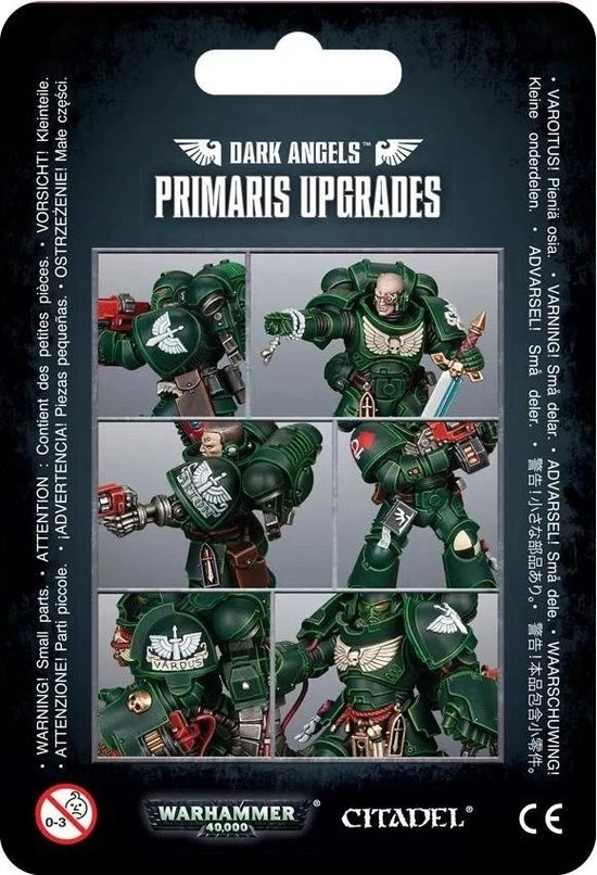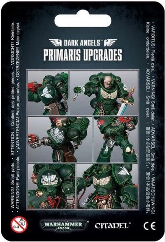 This pack of plastic components can be used to upgrade a variety of Primaris Space Marines with iconography and details specific to the Dark Angels. 21 components in total are included: