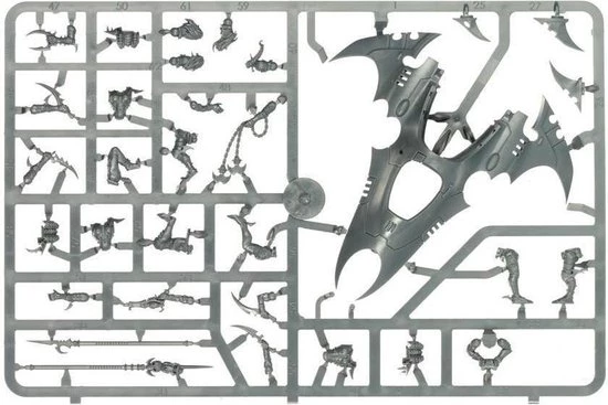 Deze meerdelige plastic kit bevat ??n Drukhari Venom in 62 componenten. De kit bevat twee Wyches die een eenheid vertegenwoordigen die wordt getransporteerd naar de strijd, een derde Wych die het splinterkanon aan boord en een doorzichtige plastic luifel afvuurt, waardoor je de mogelijkheid krijgt om de piloot te beschilderen en hem nog steeds kunt zien zodra de kit volledig is gemonteerd. Het wordt ook geleverd met een vliegende standaard met kogels en moffen en een grote vliegende basis. Deze miniatuur wordt ongeverfd geleverd en moet worden geassembleerd – we raden aan Citadel Plastic Glue en Citadel Paints te gebruiken.