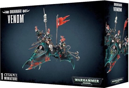 De Drukhari vertrouwen zwaar op verrassing en rauwe snelheid, en daarom zijn hun skycraft allemaal snel en manoeuvreerbaar. De meest behendige van alle Commorite transporten is het Venom, een pijl-swift skimmer die een elite kader van strijders in de strijd voert om als een vergiftigde dart in het hart van de vijand te slaan. Mocht zelfs een enkel Venom de vijandelijke verdedigingen binnendringen, dan kan het genoeg zijn om de zaden van vernietiging te zaaien, ondersteunend vuur te leggen terwijl zijn dodelijke lading aan het werk gaat. Om deze reden is de Venom het perfecte transportmiddel voor Archons, Succubi en hun respectieve lijfwachten.