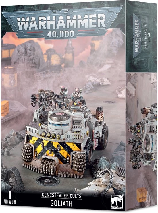 Infinitely adaptable, hard-wearing and rugged, the Goliath Truck is a mainstay of the Genestealer Cults. Fast and manoeuvrable, it bounces around the battlefield laying down walls of gunfire, heavy stubbers and autocannons ablaze. Once dedicated to the shadows, the crew manning the Goliath ? proudly emblazoned with insignia of the Cult ? now do everything in their power to get as close to the enemy, screaming rapidly across even the most hostile terrain to slam open their cargo compartment and disgorge broods of up to 10 scuttling Hybrids.