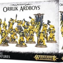 This multi-part plastic kit contains all the components necessary to assemble fifteen Ardboys, orruks drawn to the strength and boisterousness of the Ironjawz. They can be armed with a choice of choppas and smashas, big choppas or a single choppa and shield. One model can be assembled as a Waaagh! drummer, one can be assembled as a standard bearer (with either orruk banner or Icon of Gork) and one can assembled as an Ardboy Boss. Includes fifteen Citadel 32mm Round bases.