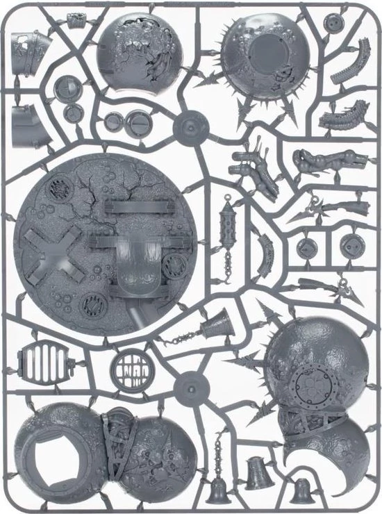 This 55-piece plastic kit makes one Miasmic Malignifier, a Death Guard-specific piece of terrain for use in games of Warhammer 40,000.
