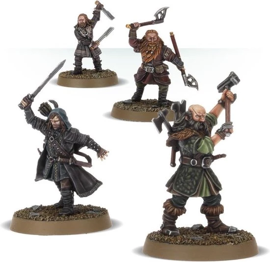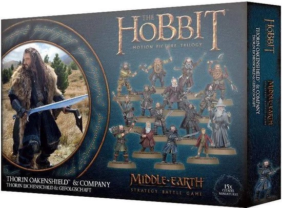Thorin’s Company is een opmerkelijk gedetailleerde verzameling Dwergen – Thorin Oakenshield, Balin the Dwarf, Dori the Dwarf, Oin the Dwarf, Gloin the Dwarf, Nori the Dwarf, Ori the Dwarf, Kili the Dwarf, Fili the Dwarf, Dwalin the Dwarf, Bombur de Dwerg, Bofur de Dwerg en Bifur de Dwerg. Elk model heeft een uniek stuk wapentuig – Thorin Oakenshield zwaait met een zwaard, terwijl voor de ronde Bombur de dwerg, een pollepel en een vleesmes het werk goed zullen doen.