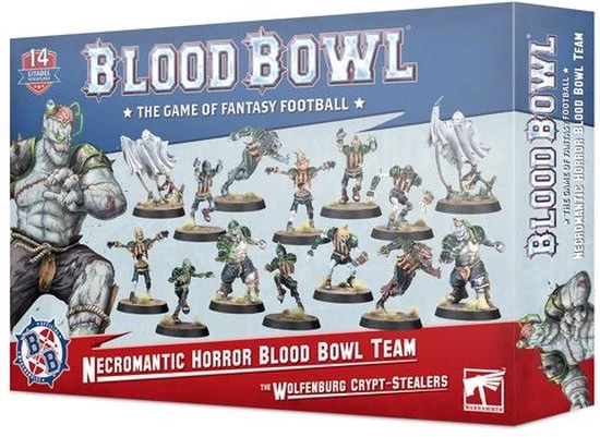 This multipart plastic kit contains all the components you’ll need to build the Wolfenburg Crypt-Stealers, a Necromantic Horror team for use in games of Blood Bowl. It contains 14 players: