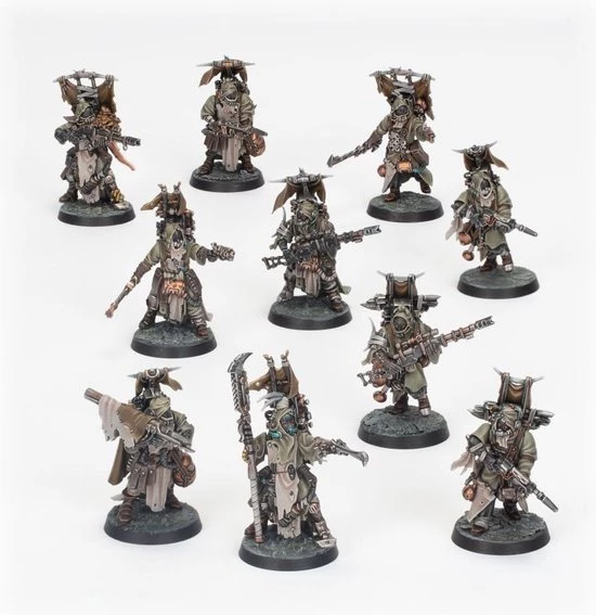 Ash Waste Nomads have inhabited the Great Equatorial Wastes for as long as anyone can remember. Unlike the outcasts and scavvies, these rugged survivors are born to the wastes, adapted to life in a desolate and deadly environment. Their ragged clothes, rebreather masks, and scavenged weaponry strike terror into the denizens of the hive cities ? a fearsome reputation the Nomads exploit as they raid caravans crossing the wastes, seizing sustenance and equipment.