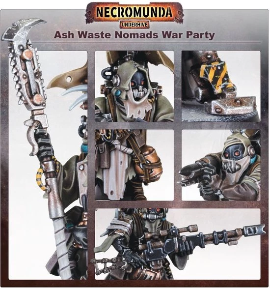 A basic gang list and weapon list for the Ash Waste Nomads in games of Necromunda are included in Necromunda: Ash Wastes construction booklet.