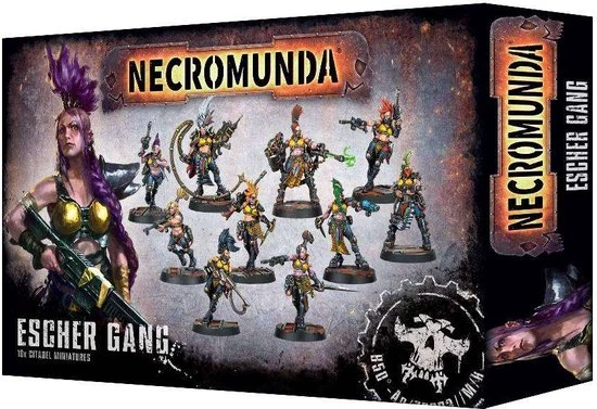 House Escher is unique among the great Houses of Necromunda, for its gangs are made up entirely of women. Masters of pharmaceuticals and chemical manipulation, what an Escher may lack in terms of raw physical strength, she more than makes up for in speed, skill and sheer psychotic flair.