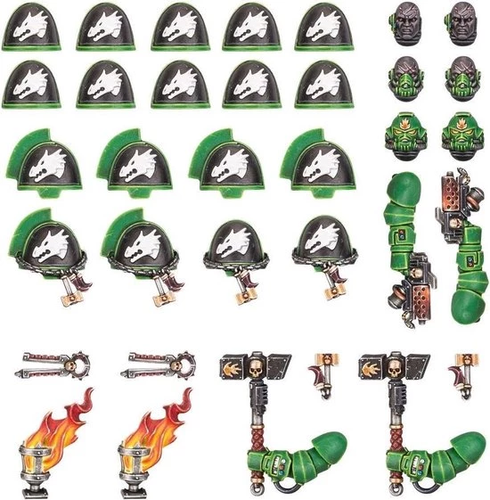 – 5x Salamanders Mk X power armour shoulder pads (designed for use with Hellblasters/Intercessors)