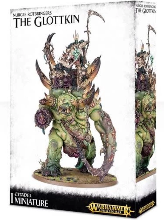 A morbid set of disease-ridden triplets, held in check and balance by their opposing attitudes and desires, the brains of the Glottkin – the pragmatic Otto and devious sorcerer Ethrac – ride to battle on the shoulders of their brother Ghurk, a creature so grotesquely swollen by the blessings of Nurgle that he could flatten most enemies unfortunate enough to get in the way of his putrid advance without even noticing.