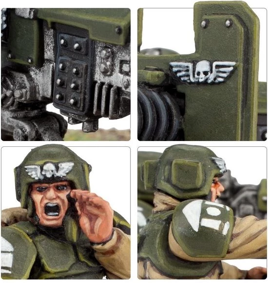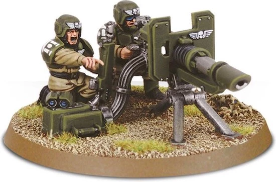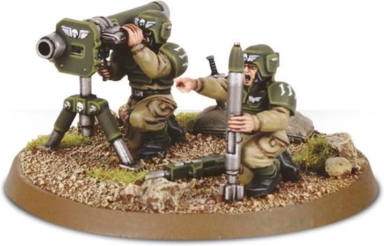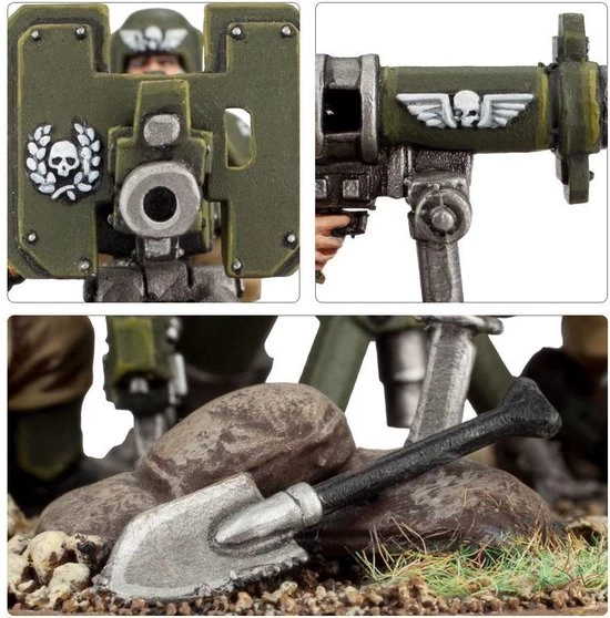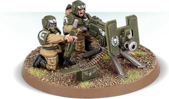 Though much of an infantry regiment is made up of rank-and-file Guardsmen, those soldiers with an affinity for bulky and more complicated weaponry are often gathered together within a dedicated heavy weapons company. Individual squads are then assigned to other companies as platoon-support units, where they bolster the battle line and provide close fire support.