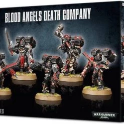 This 94-piece kit contains five multi-part plastic Blood Angels Death Company miniatures. It includes 5 backpacks, 5 jump packs, 20 shoulder pads and 8 heads. Also included are a range of bolters, bolt pistols and chainswords, a host of other weapon options and 5 x 32mm round bases.