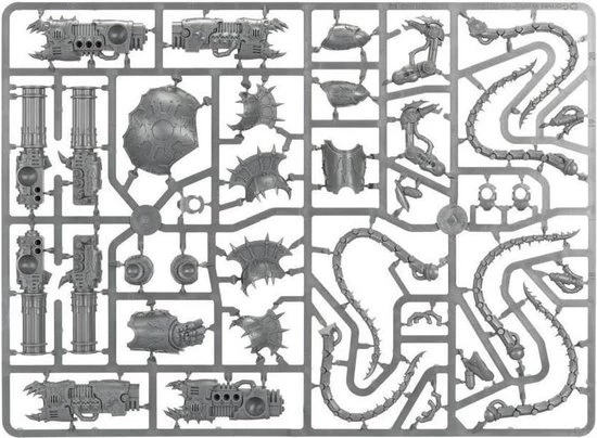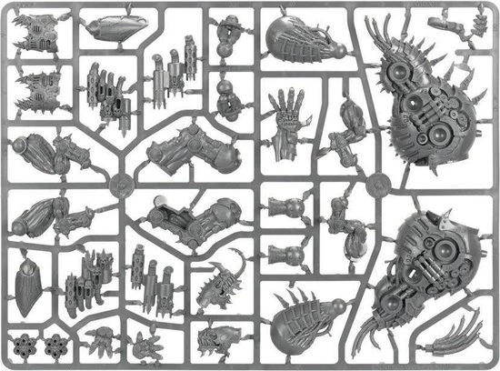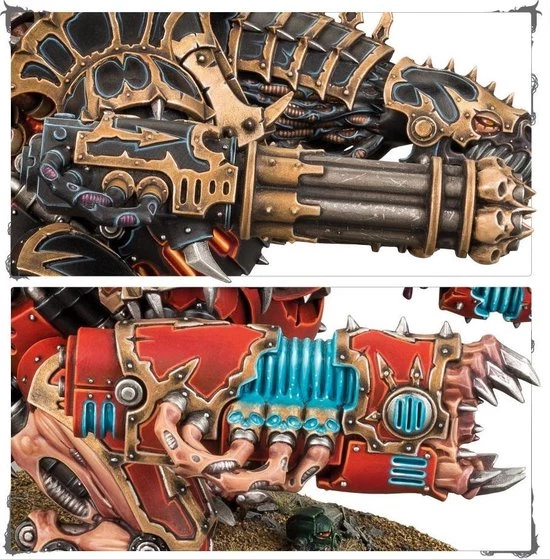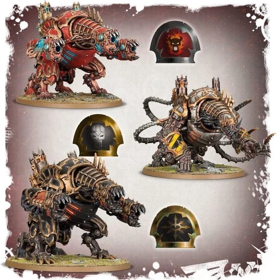 This multi-part plastic boxed set contains 67 components and a large oval base, with which to build one Chaos Space Marine Forgefiend or Maulerfiend. On this kit, the heads and arms are swappable.