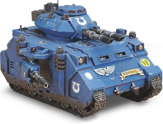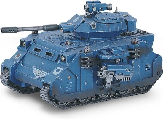 The Predator is the main battle tank of the Space Marines. Based upon the Rhino chassis, the Predator sacrifices transport capacity for improved frontal armour and heavy turret-mounted armament. The result is a well-armed and mobile tank, equally capable of holding ground or spearheading armoured assaults into the most heavily defended of enemy territory.
