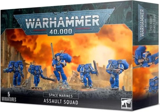 Falling from the sky with lightning speed and stunning aggression, the ferocity of a Space Marines Assault Squad is rarely matched in battle. Countless shells of bolt pistol fire slam into the enemy as the squad charges forward with no hesitation whatsoever, hacking and rending at any survivors with whirling chainswords, barging them to the gRound with their heavy power armour and shattering their skulls with close-quarter brutality.