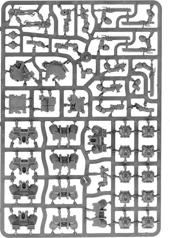 This box set contains everything you need to make five multi-part plastic Assault Marines, with amazing scope for customisation. One miniature can be assembled as a Space Marine Sergeant – two bare Sergeant heads are included on top of the seven Marine heads. The entire squad can be modelled with or without jump packs, as five complete assemblies are included with and without harnesses and backpacks. There are five running leg assemblies, twelve shoulder pads and an array of Purity Seals, scroll cases and ammo pouches.