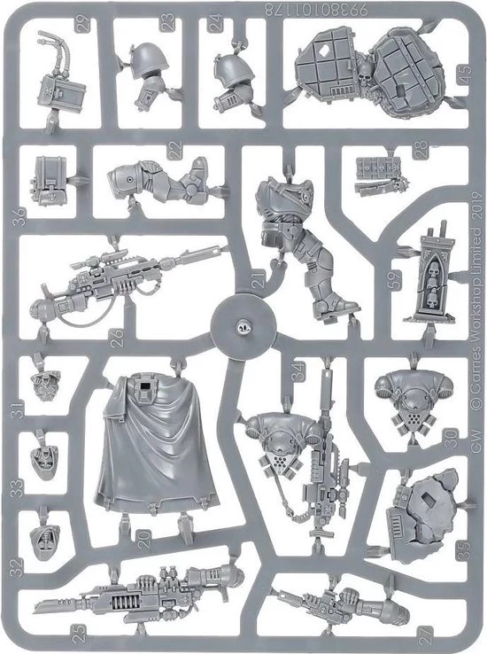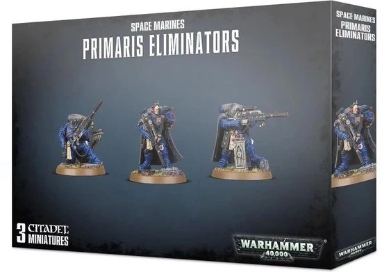 The plastic kit is made up of 60 components and makes three Eliminators. Each model is supplied with a Citadel 40mm Round base. The set also includes a Primaris Space Marines Infantry transfer sheet.