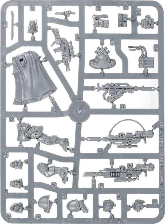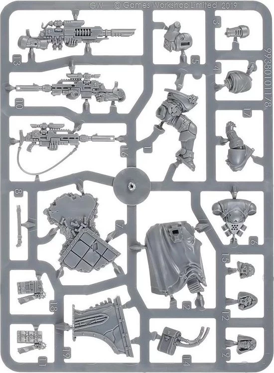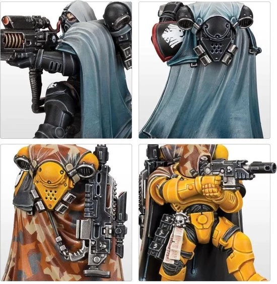 Each model in this squad can be armed either with a las fusil, which is perfect for taking out the toughest targets, or a bolt sniper rifle, which provides a choice of ammunition to suit any situation. The Sergeant can also be armed with an instigator bolt carbine. All three models can be assembled with or without helmets and the kit comes with a number of optional parts allowing you to individualise the unit.