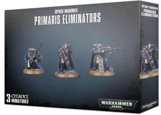 The plastic kit is made up of 60 components and makes three Eliminators. Each model is supplied with a Citadel 40mm Round base. The set also includes a Primaris Space Marines Infantry transfer sheet.