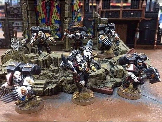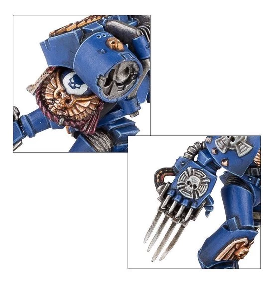 Every member of the squad can be armed with either chainsword and bolt pistol (each individual weapon bears a unique design); there are 4 sets of lightning claws; 4 pairs of thunder hammer and storm shield. The Sergeant has choice of relic blade, power sword, power fist or power axe; and there is also a grav pistol; a plasma pistol; a melta bomb; and a selection of frag and krak grenades.