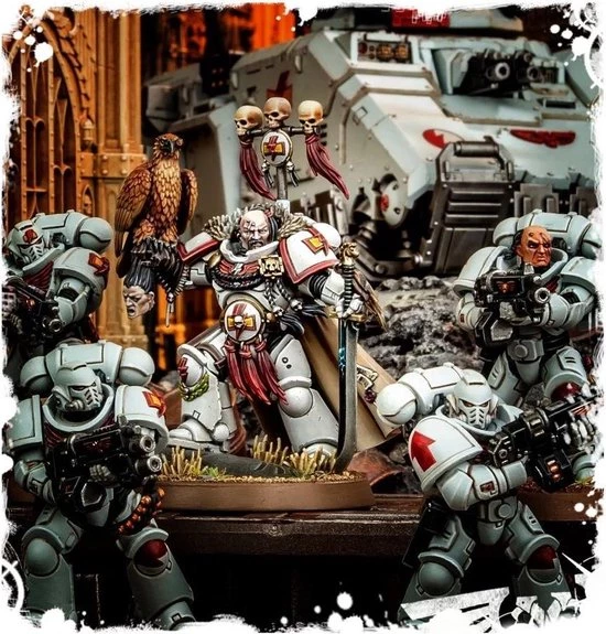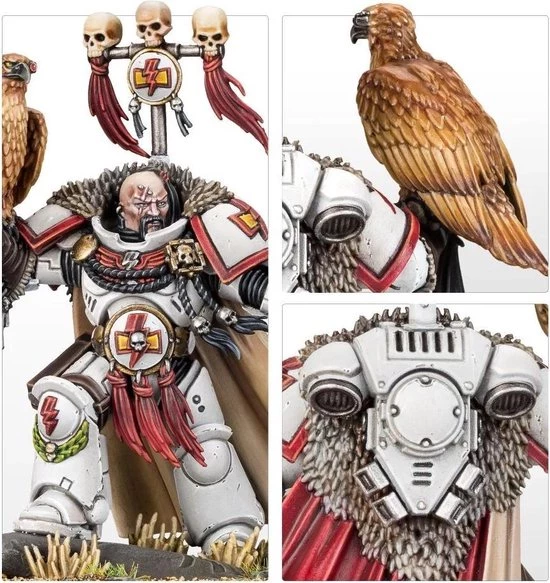 A master swordsman, Kor’sarro Khan is even deadlier when dueling enemy Characters, whose skulls he will add to his already impressive trophy rack. As a Space Marine Captain he also inspires the White Scars around him to even greater acts of glory. Kor’sarro Khan is an exemplar of the White Scars Chapter, armed with the lethal blade Moonfang and accompanied by the cyber berkut Anzuq.